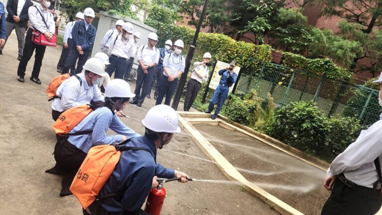 給湯室から出火したという想定で、東京本社の防災避難訓練を実施しました。